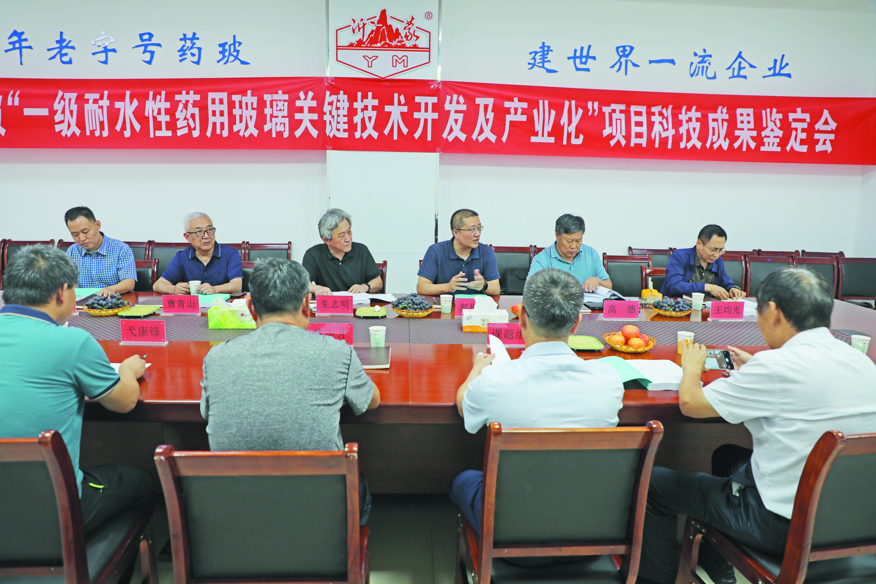 6月26日,中國出口商品包裝研究所黨委委員、所長郭振梅(右三)等一行專家到我公司對一級耐水性藥用玻璃關(guān)鍵技術(shù)開發(fā)及產(chǎn)業(yè)化項目進行科技成果鑒定,公司總經(jīng)理張軍、副總經(jīng)理蘇玉才陪同