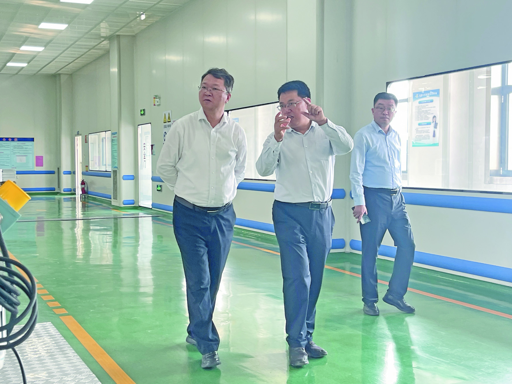 山東省委副書記、省長周乃翔(中)一行到我公司參觀指導(dǎo)工作,公司黨委書記、董事長扈永剛,黨委副書記、總經(jīng)理張軍陪同參觀公司預(yù)灌封車間,扈永剛董事長詳細(xì)匯報了公司的生產(chǎn)經(jīng)營、科技創(chuàng)新、市場開拓等情況